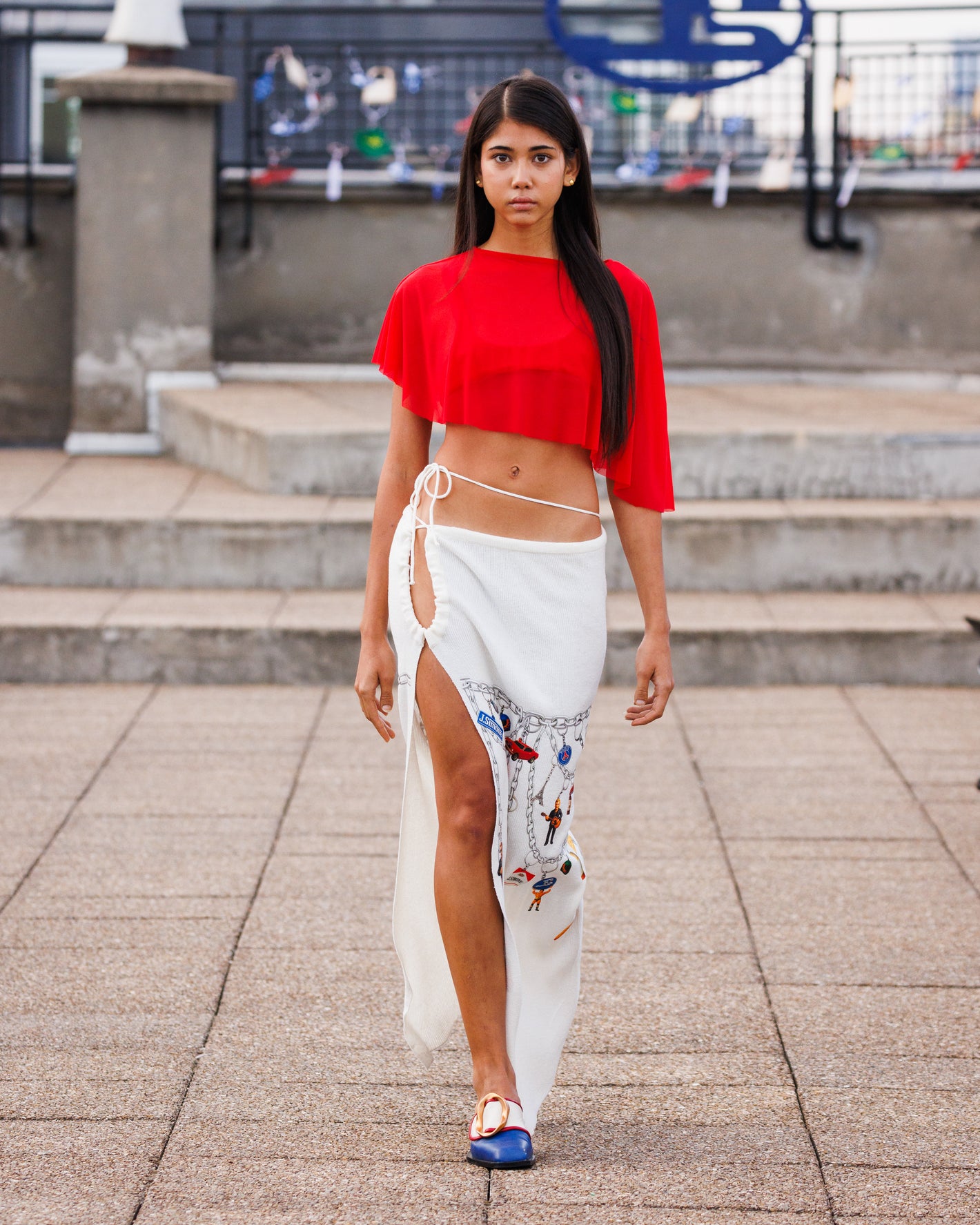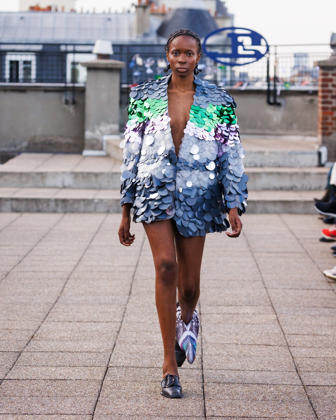 The collection also highlights a strong commitment: all the sequins were created from used bubble tea cups, collected and transformed. This symbolic gesture embodies J Simone’s desire to reinvent waste as an object of desire.