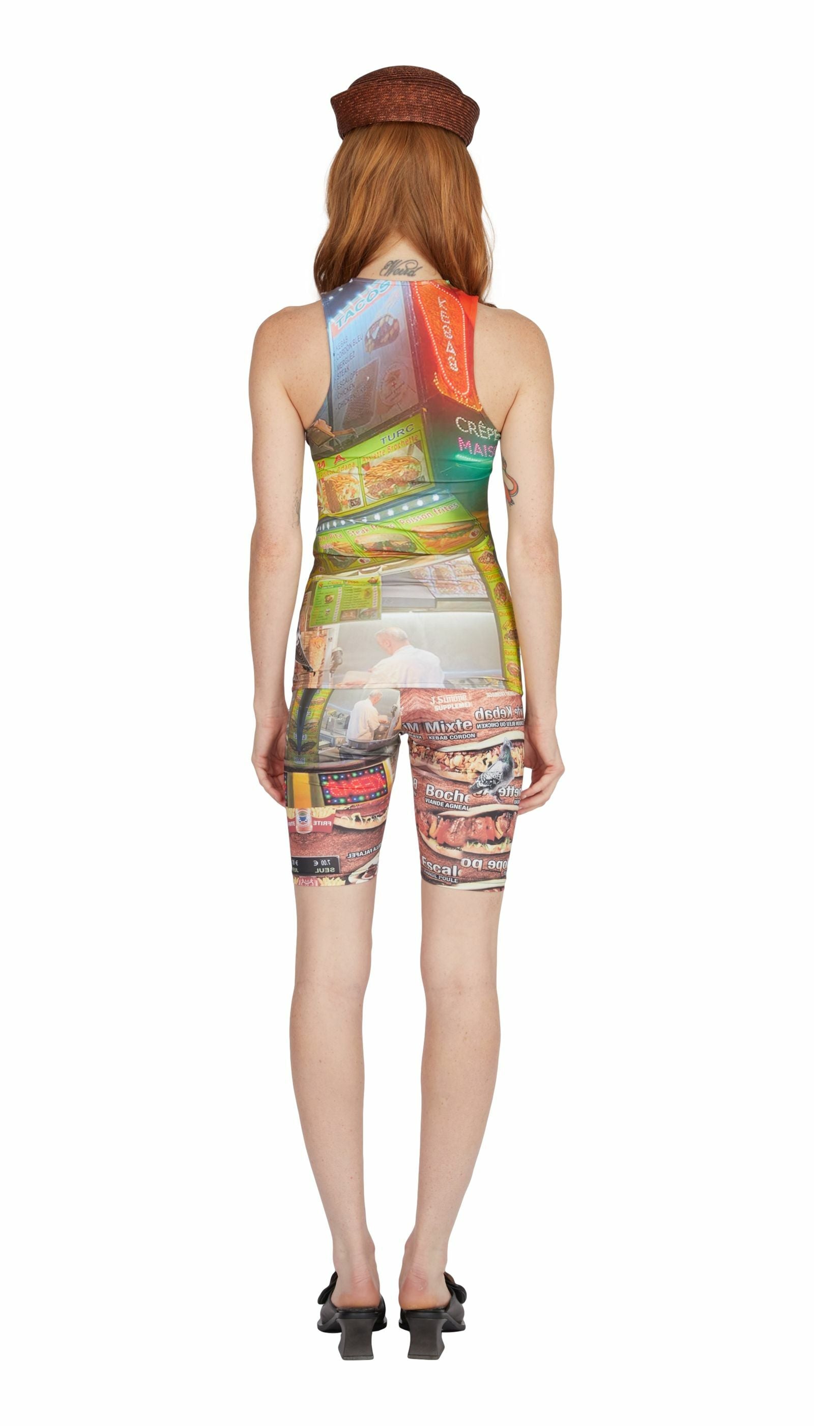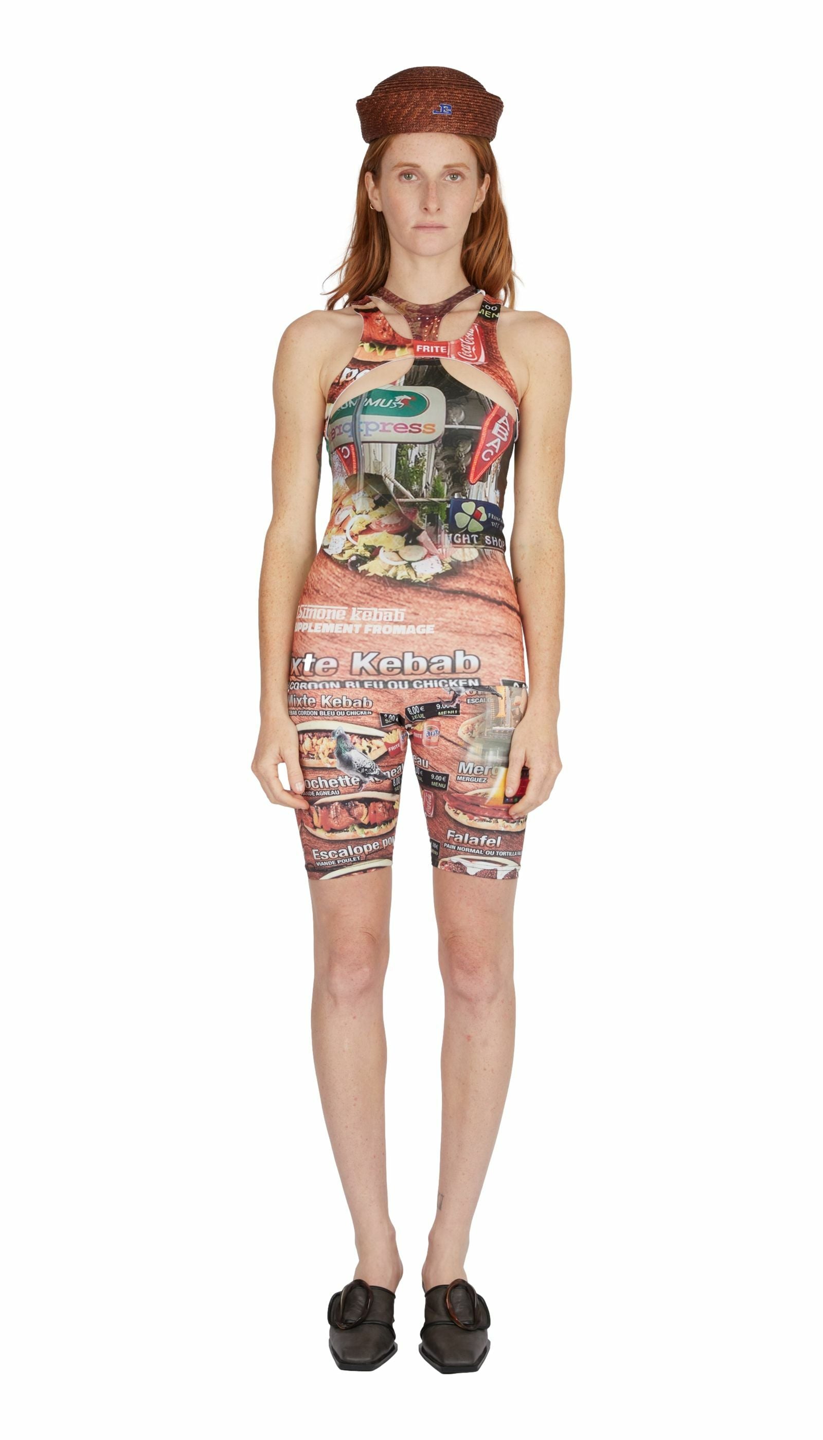 Printed Kebab polyester top, bold and graphic, made in France.